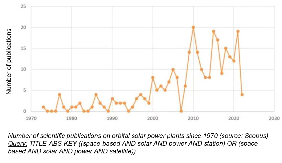 The number of scientific publications, as well as patent applications, has increased sharply since the beginning of the 2010s. This is in line with the announced willingness of the various international entities to put into orbit these space-based solar power stations.
