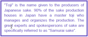 While the different steps of the sake production process and the raw materials are well known, the key elements necessary for the production of high quality sake are often kept secret by the Japanese master producers: the “Tojis”. Learning these trade secrets and mastering the process requires several years of training with Japanese tojis.