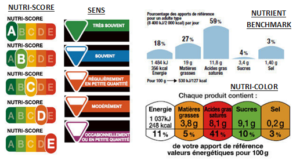 - The Nutri-Score or 5C, led by Prof. S. Hercberg from Inserm, assigns a score from A to E with an associated color system ranging from green to red.